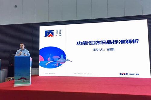 展會(huì)期間,中紡標(biāo)浙江公司總經(jīng)理助理胡凱在中國(guó)(紹興)功能性紡織品論壇上做了“功能性紡織品標(biāo)準(zhǔn)解析”的主題發(fā)言。胡凱從功能性紡織品標(biāo)準(zhǔn)體系,功能性服裝產(chǎn)品標(biāo)準(zhǔn)的選擇,功能性紡織品標(biāo)準(zhǔn)發(fā)展趨勢(shì)等三個(gè)方面做了專(zhuān)業(yè)分享。同時(shí),參展團(tuán)隊(duì)積極推廣檢測(cè)項(xiàng)目及公司業(yè)務(wù),詳細(xì)解答展位垂詢企業(yè)的相關(guān)咨詢,針對(duì)意向合作企業(yè)進(jìn)行一對(duì)一重點(diǎn)商談,進(jìn)一步明確合作方向,并邀請(qǐng)企業(yè)代表來(lái)公司實(shí)地參觀交流。