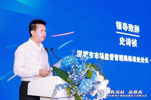 深圳市市場監(jiān)督管理局標(biāo)準(zhǔn)處處長、一級調(diào)研員史詩禎出席并致辭。他表示要堅(jiān)持以標(biāo)準(zhǔn)為引領(lǐng)構(gòu)建科學(xué)先進(jìn)的標(biāo)準(zhǔn)體系,以標(biāo)準(zhǔn)化手段開展知識產(chǎn)權(quán)保護(hù),充分發(fā)揮標(biāo)準(zhǔn)對推動(dòng)技術(shù)進(jìn)步,服務(wù)企業(yè)發(fā)展,引領(lǐng)產(chǎn)業(yè)升級的先導(dǎo)性作用。