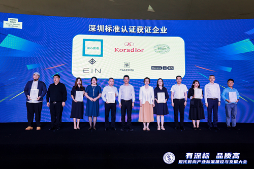 經(jīng)過多年的發(fā)展,深圳已發(fā)展成為國內(nèi)行業(yè)門類最齊全、原創(chuàng)品牌最集中、產(chǎn)業(yè)配套最完善、規(guī)模集聚效應(yīng)最顯著的時(shí)尚產(chǎn)業(yè)基地之一,服裝時(shí)尚產(chǎn)業(yè)在全國處于引領(lǐng)地位,更是被譽(yù)為“中國女裝之都”。深圳標(biāo)準(zhǔn)定位于“國內(nèi)領(lǐng)先,國際一流”的評價(jià)體系,以先進(jìn)標(biāo)準(zhǔn)、卓越品質(zhì)為評價(jià)維度驗(yàn)證產(chǎn)品性能和服務(wù)體驗(yàn),突顯產(chǎn)品和服務(wù)的競爭優(yōu)勢;以城市品牌的形象,為市場推介優(yōu)秀的產(chǎn)品和優(yōu)質(zhì)的服務(wù),向社會(huì)傳遞高標(biāo)準(zhǔn)引領(lǐng)、高質(zhì)量發(fā)展的理念。本次有多家服裝企業(yè)產(chǎn)品獲得深圳標(biāo)準(zhǔn)認(rèn)證證書,與會(huì)領(lǐng)導(dǎo)共同為獲證企業(yè)頒發(fā)了深圳標(biāo)準(zhǔn)認(rèn)證證書。