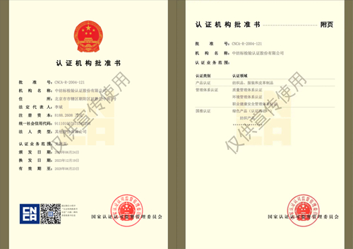 近日,通用技術(shù)中紡標(biāo)檢驗(yàn)認(rèn)證股份有限公司(以下簡稱“中紡標(biāo)”)收到國家認(rèn)證認(rèn)可監(jiān)督管理委員會(huì)換發(fā)的認(rèn)證機(jī)構(gòu)批準(zhǔn)書,批準(zhǔn)擴(kuò)增質(zhì)量管理體系、環(huán)境管理體系、職業(yè)健康安全管理體系等認(rèn)證能力。
