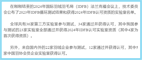 喜訊丨中紡標(biāo)獲得2024年IDFB認(rèn)可實(shí)驗(yàn)室資質(zhì)