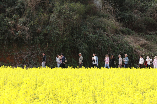 伴著和煦的春風,滿載著職工的大巴車從公司出發(fā)。一路上大家歡聲笑語、其樂融融,大概一個半小時車程后,大家到達了此次活動的第一站——陳蔡千畝油菜花田。景區(qū)內盛開的油菜花競相爭艷,散發(fā)出濃濃春意。大家卸下平日工作中的緊張和疲憊,漫步于油菜花田,紛紛拿出相機拍照留念,盡情享受春光里的無限美好。