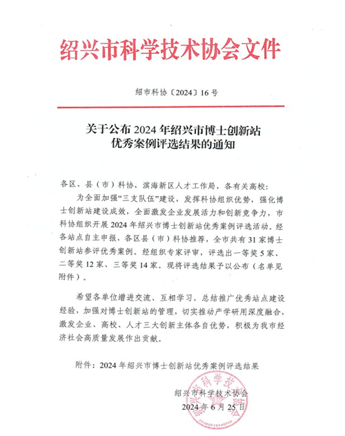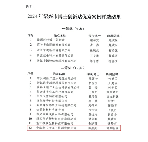 浙江中紡標(biāo)獲評(píng)"2024年紹興市博士創(chuàng)新站優(yōu)秀案例"二等獎(jiǎng)