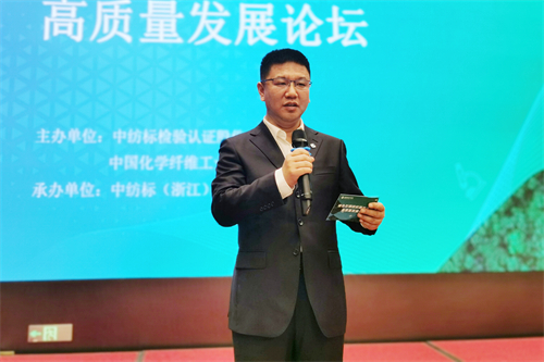中國化學(xué)纖維工業(yè)協(xié)會副會長靳高嶺、副總工程師李德利、副總經(jīng)濟師張凌清、行業(yè)發(fā)展部副主任劉世揚,中紡標(biāo)副總經(jīng)理郭文松、技術(shù)顧問田媛,浙江中紡標(biāo)總經(jīng)理王守宇等領(lǐng)導(dǎo)及嘉賓出席活動。論壇由中紡標(biāo)認(rèn)證事業(yè)部副總經(jīng)理劉明主持。