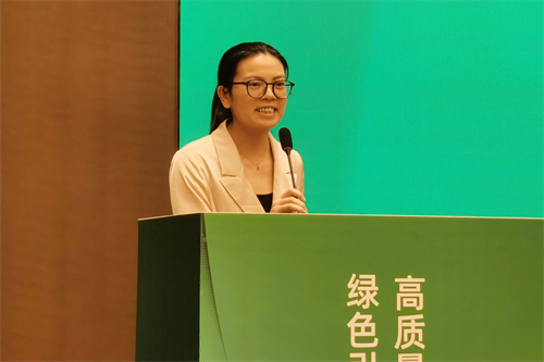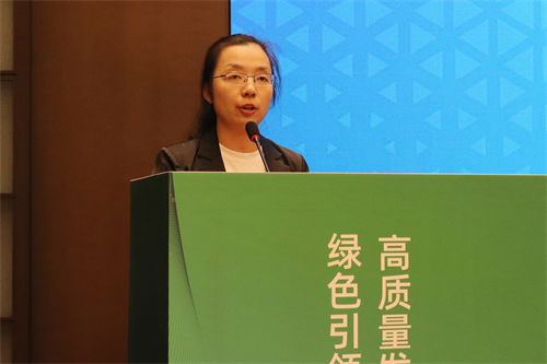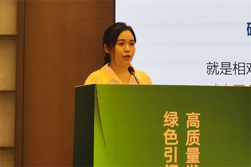 浙江海利環(huán)??萍脊煞萦邢薰緺I銷總監(jiān)林靈玲在《循環(huán)經(jīng)濟中的綠色創(chuàng)新與可持續(xù)發(fā)展》報告中,圍繞綠色可持續(xù)發(fā)展和綠色纖維產(chǎn)品認(rèn)證在企業(yè)經(jīng)營中的意義和應(yīng)用展開講解。