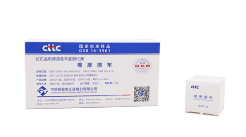T/CNTAC RM 1-2019 《紡織品耐摩擦色牢度測試用棉摩擦布標(biāo)準(zhǔn)用品》( GSB 16-3631-2022)依據(jù)GB/T 33729-2017(ISO 105-F09:2009,MOD)《紡織品 色牢度試驗(yàn) 棉摩擦布》研制,適用于GB/T 3920(ISO 105-X12:2001,MOD)《紡織品 色牢度試驗(yàn) 耐摩擦色牢度》和GB/T 29865(ISO 105-X16:2001,MOD)《紡織品 色牢度試驗(yàn) 耐摩擦色牢度 小面積法》,試驗(yàn)時安裝在耐摩擦色牢度試驗(yàn)儀的摩擦頭上作為摩擦布對試樣進(jìn)行干、濕摩擦試驗(yàn)。