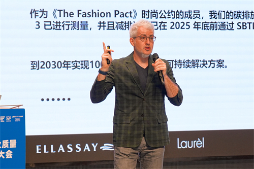 歌力思集團(tuán)首席可持續(xù)時(shí)尚官Dominique Simard司馬德明在《可持續(xù)發(fā)展與ESG:高端時(shí)裝品牌集團(tuán)的實(shí)踐與啟示》的報(bào)告中,分別從減少碳排放、倡導(dǎo)循環(huán)經(jīng)濟(jì)、保護(hù)生物多樣性三大可持續(xù)發(fā)展議題,向參會嘉賓展示企業(yè)綠色發(fā)展成果。