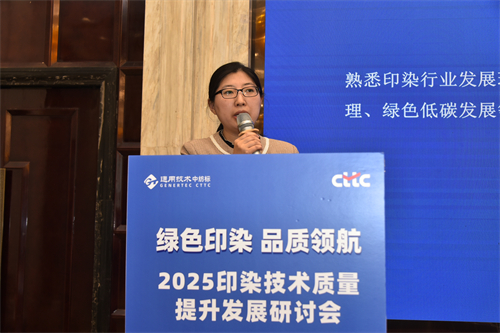 深圳中紡標質(zhì)量技術部主任、高級工程師劉鵬結(jié)合近期的熱點問題,作了題為《“綠色印染,安全未來——從沖鋒衣PFAS事件解析面料印染的挑戰(zhàn)與創(chuàng)新”》的主題發(fā)言 ,講解了PFAS的功能性和風險性,分析了關于PFAS的國內(nèi)外法規(guī)。她以印染工藝中的典型問題、化學殘留與環(huán)保風險、工藝缺陷導致的問題三個方面闡述了面料印染面臨的挑戰(zhàn),分享了材料替代、工藝升級等綠色印染的創(chuàng)新路徑。