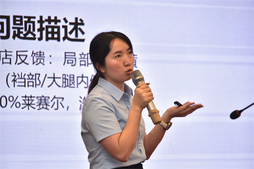 李寅在《印花產(chǎn)品質(zhì)量管控經(jīng)驗分享》的報告中,結(jié)合實際案例詳細分析了印花產(chǎn)品中常見的印花變色、黃變、起翹脫層、開裂等質(zhì)量問題與管控方法,同時分享了印花耐濕熱色牢度檢測方法標準的相關研究,通過介紹相關顏色變化的原因、提出解決問題的辦法,結(jié)合實際退殘率數(shù)據(jù)的下降說明質(zhì)量管控方法的有效性。