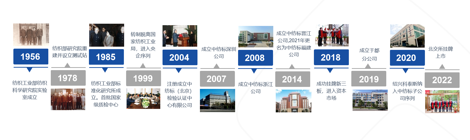 中紡標(biāo)檢驗(yàn)認(rèn)證股份有限公司(證券簡(jiǎn)稱:中紡標(biāo),證券代碼:873122,英文縮寫CTTC)由中國(guó)紡織科學(xué)研究院有限公司于2004年出資組建,是集標(biāo)準(zhǔn)、檢驗(yàn)、檢測(cè)、計(jì)量、認(rèn)證五位一體的綜合性技術(shù)服務(wù)機(jī)構(gòu),可為紡織服裝企業(yè)提供全方位、全產(chǎn)業(yè)鏈質(zhì)量解決方案。主要業(yè)務(wù)包括紡織標(biāo)準(zhǔn)研究和制修訂、紡織及輕工產(chǎn)品檢驗(yàn)檢測(cè)和認(rèn)證、試驗(yàn)用耗材研發(fā)及經(jīng)營(yíng)、儀器校準(zhǔn)等。