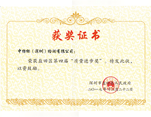 質(zhì)量進(jìn)步獎(jiǎng)
